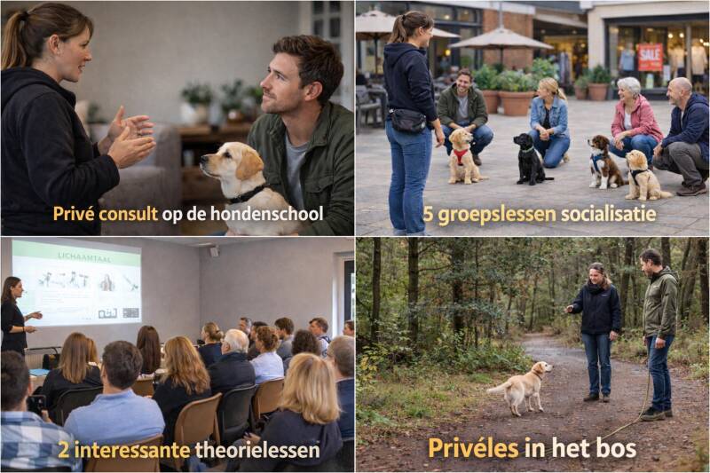 Zodat je alle tips vanaf dag 1 direct kunt toepassen. Bij de theorieles is de pup niet aanwezig.